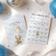 Personalize this adorable light dusty blue, beige, and white "We Can Bearly Wait!" teddy bear theme baby boy shower BINGO card featuring featuring pre-filled squares with cute "Find Someone Who" wording, a sweet watercolor teddy bear wearing a blue bow on the front, with custom mommy's name, shower date, and teddy bear holding checkerboard balloons over blue ticking pinstripes on the back. It's the cutest on-theme fun and interactive get-to-know-you game! Discover the matching invitation, diaper raffle card, books for baby card, favor stickers & tags, decor and more in the full collection above ♥ Custom design requests, colors, product collection additions, and template questions are always welcome - click the "message" button or email direct (with a quick response time!): contact@figandlilyco.com. Design is lovingly created by Fig and Lily Studios - sending blessings and thanks for being here with us ♥