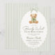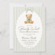 Celebrate your little one with this charming baby shower invitation template featuring a teddy bear in soft green tones and an adorable watercolor bear. The design is perfect for a gender-neutral celebration and is perfect for a boy or girl.