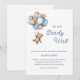 Celebra a tu pequeño con esta adorable invitación temática de osito de peluche, que presenta a un dulce oso que sostiene globos azules, marrones y blancos, es perfecto para una fiesta de bebé. Colores suaves, fuentes juguetonas y detalles personalizables hacen que sea fácil establecer el tono para una celebración conmovedora.