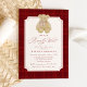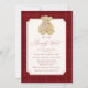 Invite loved ones to celebrate with this classic “We Can Bearly Wait” baby shower invitation featuring a hand-painted watercolor teddy bear wearing a red and cream plaid scarf. The phrase “We Can Bearly Wait” is shown in dark red calligraphy with matching serif lettering. Your baby shower details appear below, framed within a vintage-style cream border surrounded by a watercolor red and burgundy plaid background. This timeless design blends cozy charm with a refined, preppy style—perfect for fall and winter boy baby showers.