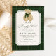 Invite loved ones to celebrate with this classic “We Can Bearly Wait” baby shower invitation featuring a hand-painted watercolor teddy bear wearing a green scarf. The phrase “We Can Bearly Wait” is displayed in elegant dark green calligraphy with matching serif lettering. Your baby shower details appear below, framed within a vintage-style cream border surrounded by a watercolor green plaid background. With its timeless preppy design and cozy charm, this invitation is perfect for fall and winter boy baby showers.