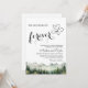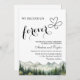 An elegant Wedding Invitation with watercolor mountains and pine trees that you can customize with your details.