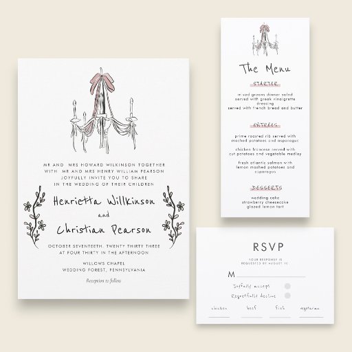Invitación website Hand Drawn Chandelier Bow Wedding