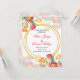 "Vibrant wedding invitation adorned with colorful tulips in shades of red, orange, yellow, and pink, beautifully framing the text within elegant golden circles. The combination of floral artistry and refined typography creates a joyful and romantic design, perfect for celebrating love in style."