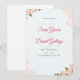 "Elegant wedding invitation featuring soft pink roses and lush green leaves in the corners, paired with refined typography in romantic shades of pink and gray. This timeless floral design creates a warm and graceful atmosphere, perfect for celebrating love and special occasions
