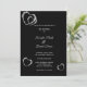 This wedding invitation is shown in a classic layout with a fresh look of diamond hearts with sparkle all done in a black and white theme,