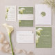 This wedding invitation features a sophisticated, minimalist style. Delicate calla lilies in soft green hues are depicted against a light background, creating an atmosphere of sophistication and tranquility. The design is modern, airy, and perfect for a stylish, romantic wedding.