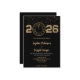 A wedding invitation with a black background and gold text is shown. The year "2026" and a clock design appear at the top, adding elegance.