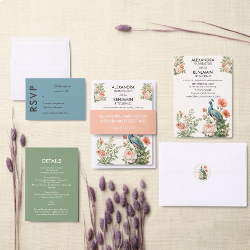 Invitación Wedding Peacock Botanical | Vintage Floral Art