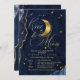 Invitación We're Over the Moon Gold Stars Blue Baby Shower