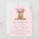 This Pink Floral Cowgirl Elegant Arch Invitation features a beautiful watercolor illustration of worn leather cowboy boots surrounded by soft pink peonies, symbolizing love, joy, and a touch of country glam. The gentle pastel pink background and arched card shape add modern sophistication, while the delicate script “Bridal Brunch” headline sets the tone for a joyful, champagne-filled celebration.
