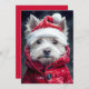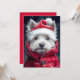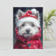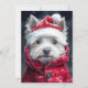 Este adorable West Highland White Terrier está listo para las fiestas! Vestido con un sombrero de Santa y un abrigo rojo de invierno, este pequeño cachorro captura perfectamente el espíritu festivo. Con nieve que cubre suavemente su pelaje y abrigo, este momento del país de las maravillas de invierno está lleno de calidez y encanto. Los ojos expresivos y la nariz de botón del Westie añaden una capa extra de ternura a esta escena navideña.