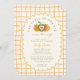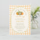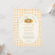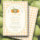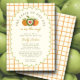Celebra tu pequeña con esta dulce y estacional invitación a la ducha de bebé "The Apple of Our Eye", con un cálido fondo de gingham naranja y un encantador trío de manzanas verdes y naranjas acentuadas con un corazón. Perfecto para una celebración neutral en cuanto a género o para una ducha para un niño o un chica, este diseño combina colores acogedores de otoño con un tema fresco y lúdico del huerto. Un cuadro de vieiras resalta los detalles de tu evento personalizado, mientras que la vibrante paleta de cosecha marca un tono alegre. Ideal para reuniones rústicas, de granja, de huertos o de otoño, esta invitación es una forma deliciosa de honrar su más reciente manzana de la vista.
