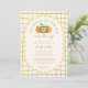 Celebra tu pequeña con esta dulce y estacional invitación a la ducha de bebé "The Apple of Our Eye", con un cálido naranja y un fondo de gingham verde y un encantador trío de manzanas verdes y naranjas acentuadas con un corazón. Perfecto para una celebración neutral en cuanto a género o para una ducha para un niño o un chica, este diseño combina colores acogedores de otoño con un tema fresco y lúdico del huerto. Un cuadro de vieiras resalta los detalles de tu evento personalizado, mientras que la vibrante paleta de cosecha marca un tono alegre. Ideal para reuniones rústicas, de granja, de huertos o de otoño, esta invitación es una forma deliciosa de honrar su más reciente manzana de la vista.