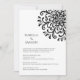 Celebra tu día especial con un toque de elegancia y sofisticación con nuestra exclusiva y artísticamente diseñada invitación a la boda. Con un fondo blanco inmaculado y adornado con un cautivador patrón de simetría giracional negro de chozas y puntos que forman un patrón florido, esta invitación captura maravillosamente la esencia del romance eterno y el encanto moderno. Esta invitación es perfecta para las parejas que buscan una mezcla de diseño contemporáneo y elegancia clásica, lo que marca la tónica de un boda que será recordado por su belleza y su gracia. ¡Pida la suya hoy mismo y haga que su invitación boda sea inolvidable!