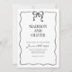 Design feature a simple black and white design with a cute hand drawn wavy border and a small black bow at the top. Using a clean classic font and handwritten calligraphy script. It looks elegant but also a little playful.