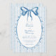 This whimsical invitation features a soft blue watercolor bow and an oval frame against a classic striped background. Perfect for a wedding with a preppy or coastal aesthetic, this charming design provides a sweet, hand-painted look for your special celebration. Created by Simply Farmhouse Press.