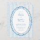 This whimsical invitation features a soft blue watercolor scalloped oval frame against a classic striped background. Perfect for a wedding with a preppy or coastal aesthetic, this charming design provides a sweet, hand-painted look for your special celebration. Created by Simply Farmhouse Press.