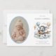 Celebrate your newest arrival with this whimsical "Adventure Awaits" birth announcement. Featuring a charming hand-painted watercolor elephant flying an airplane through soft clouds and colorful hot air balloons, this design is perfect for a baby boy's debut. The card includes a classic oval photo frame to showcase your little one's first portrait alongside their birth details. Easily personalize the name, date, weight, and parents' names to create a timeless keepsake for friends and family.
