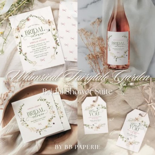 La colección "Whimsical Fairytale Garden & Bows" de duchas de novias es una suite de ensueño y encantadora que te transportará a un exuberante jardín de delicados florales y arcos finos. Con una suave y romántica paleta de colores y una encantadora corona de flores dibujada a mano, esta colección captura perfectamente la esencia de una celebración de un libro de cuentos. La tipografía elegante agrega un toque de sofisticación, mientras que los acentos sutiles del arco vinculan el diseño con una sensación de dulce feminidad. Esta suite marca la tónica de una ducha de novia llena de brillo, elegancia y romanticismo intemporal.