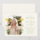 The invitation is adorned with a delightful watercolor frame featuring a vibrant array of spring flowers in soft pastel colors. This hand-drawn whimsical green frame is accentuated with an elegant bow, adding a touch of playful sophistication that captures the essence of a blooming garden.