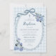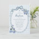 Invitación Whimsical Gingham Dusty Blue Floral Boy Baptism