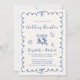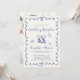 Romantic light cream wedding reception invitation featuring a french blue wavy frame adorned with coquette bows, whimsical hand drawn illustrations of a heart, stars and wine glasses, and "Wedding Reception" and the names of the bride and groom in a playful blue script. Add your photo on the back.