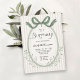 A whimsical birthday invitation with an oval frame embellished with a hand drawn green bow and neutral beige watercolor stripes pattern background. The text template has coordinating retro-inspired type face pairings ready to personalize with your event details. Feminine and stylish with old fashioned charm. These invitations may be ordered in both printed and instant download digital formats.