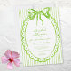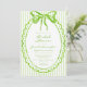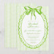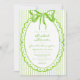 This whimsical bridal shower invitation features a bright lime green watercolor bow and a scalloped oval frame against a classic striped background. Perfect for a shower with a preppy or coastal aesthetic, this charming design provides a sweet, hand-painted look for your special celebration. Created by Simply Farmhouse Press.
