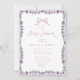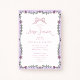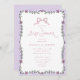 Celebrate your little one with this whimsical baby shower invitation featuring a hand-drawn watercolor floral frame in soft purple tones and a sweet pink bow. This elegant yet playful design is perfect for a romantic, vintage-inspired, or cottagecore baby shower. The delicate florals and pastel colors create a charming, premium look, while all text and colors are fully editable so you can easily personalize it for your special day. Ideal for a baby girl shower with a soft, timeless style.