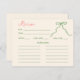 Extraordinaria tarjeta de recetario de ducha de novia rosa y verde descargable con un arco dibujado a mano.