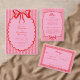 Invitación Whimsical Red Pink Watercolor Bow Stripe Wedding