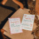 Set a festive tone with this whimsical Friendsmas invitation featuring a watercolor red striped background, playful lettering, and hand-drawn holiday illustrations. A cheerful red and pink palette and modern doodle style make it the perfect choice for a cozy Christmas party with friends and Secret Santa fun.