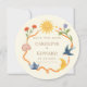 The round shape and watercolor illustration create a unique artistic feel, setting the tone for a joyful celebration.