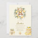 Mark your baby's first birthday with this whimsical and heartwarming invitation. The design features a sweet teddy bear nestled within a wreath of fresh lemons and delicate daisies, evoking a sense of pure joy and innocence. Accompanying illustrations of a tiered lemon cake and charming gift boxes enhance the festive spirit. This invitation is ideal for a memorable 'first birthday' event, bringing a burst of sunshine and sweetness to your celebration.