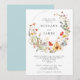 This elegant invitation features a delicate wreath of rustic watercolor wildflowers surrounding the couple's names. Perfect for whimsical spring and summer engagement parties.