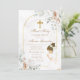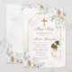 Invitación White Floral Gold Cross Girl First Holy Communion