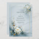 Invite your guests to a celebration of pristine luxury and timeless elegance with this exquisite wedding invitation. The design features a stunning white marble background crisscrossed with delicate cool blue-gray veining, creating a sophisticated, high-end surface. A thin, elegant metallic gold rectangular frame highlights the central space. This frame is lavishly bordered by intricate floral and feather accents, dominated by large, velvety white peonies and smaller flowers with bright yellow centers. Striking white feather plumes and subtle gold foliage accents emphasize the opulent, cool-toned aesthetic, perfectly setting the stage for a classic, sophisticated, or formal wedding. This invitation card is ideally suited for a high-end formal wedding, a chic engagement celebration, or a sophisticated bridal shower. It would also perfectly suit a luxury winter or destination event or a serene, elegant vow renewal ceremony. The card's captivating blend of pristine florals and luxurious marble texture ensures it is versatile for any solemn ceremony, corporate gala, or refined birthday announcement.