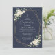 Invite friends and family in style and set the tone for your special day with this elegant confirmation invitation. Design features white watercolor flowers, greenery and gold frame on navy blue background.