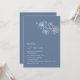 This elegant contemporary wedding invitation features white line art flowers and white script on a dusty blue background.