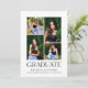 Announce your celebration with this modern graduation invitation featuring a clean white layout, a four-photo collage, and bold “Graduate” typography. Personalize with the graduate’s name, school, and class year for a timeless look. Backside includes a coordinating photo area with "Grad Party" details in crisp black type.