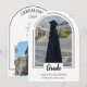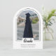 Introducing our white arch photo graduation announcement—a sleek, modern keepsake designed with minimalist elegance. The front features an arch-shaped photo with a thin border and the word "grad" partially overlaying the photo. Personalize the template by adding your graduation year, name, and school to create your announcement with ease. On the back, upload another photo (landscape orientation is best) as well as provide graduation ceremony details.