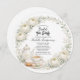 Elegant bridal shower design featuring a white palette tea party theme with a circular floral arrangement, teacup, teapot and dessert accents. Perfect for classic afternoon tea celebrations, garden bridal showers and sophisticated bride to be gatherings. A timeless and delicate choice for a feminine tea party event.