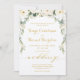 Flores de peones blancos en cascada a lo largo del follaje verde plateado y las guirnaldas de eucalipto e hidrangeas con un lujoso tipo de letra de caligrafía dorada con letras a mano que es toda la rabia en las invitaciones a la boda. Personalizable esto para cualquier ocasión.