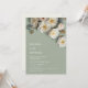 This elegant wedding invitation features textured white yellow roses on a sage green background with first names only.