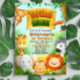 Celebra la aventura del Safari para todas las edades. Esta invitación Safari es una versión moderna de la naturaleza de vida salvaje que amamos. Cada elemento y fondo están dibujados digitalmente para coincidir y proporcionar una apariencia de película animada, con el nombre del celebrante resaltado en el centro para dar un toque personalizado a la invitación