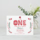 NewParkLane - Tarjeta de Invitación para el Primer Cumpleaños del Bebé, con divertida tipografía de arte popular y flores, en rojo y verde.