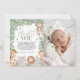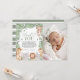Send a sweet note of gratitude with this adorable Wild One jungle photo thank you card. Featuring watercolor safari animals — lion, giraffe, elephant, monkey, and tiger — surrounded by lush tropical leaves and your baby’s photo. Perfect for coordinating with a Wild One, jungle, or safari first birthday theme. Personalize with your child’s name, message, and photo to create a memorable keepsake for guests.