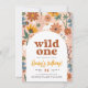 Invitación Wild One Retro Boho Wildflower Primer Fiesta de cu
