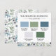 This elegant color chip card showcases a curated palette inspired by the Wildflower Anemone collection, featuring soft, nature-driven hues including dusty blue, sage green, blue spruce, soft lavender, and forest leaf. Each color is thoughtfully labeled with its corresponding hex code, making this card both visually beautiful and highly functional for design coordination. A delicate botanical border of anemones, thistle blooms, and greenery along the bottom adds a refined, cohesive touch—perfect for wedding planning, branding, or creative inspiration.